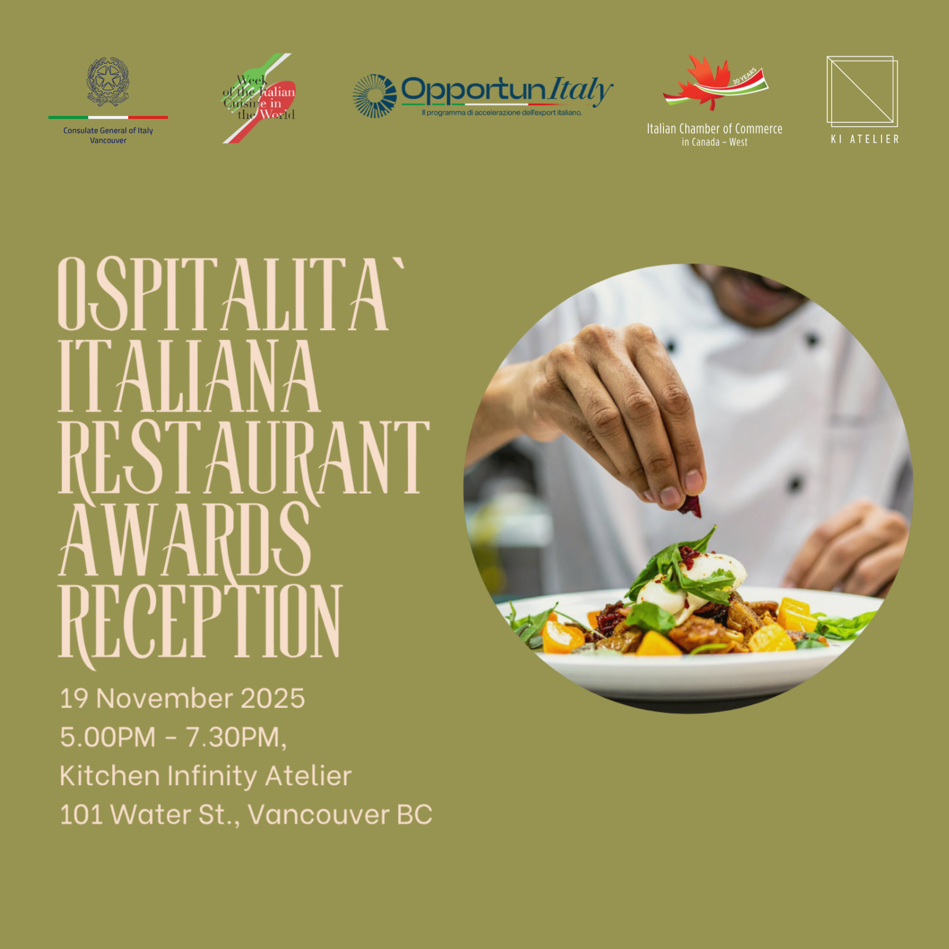 Presented in collaboration with the Consulate General of Italy in Vancouver and Kitchen Infinity Atelier in Gastown, Vancouver.